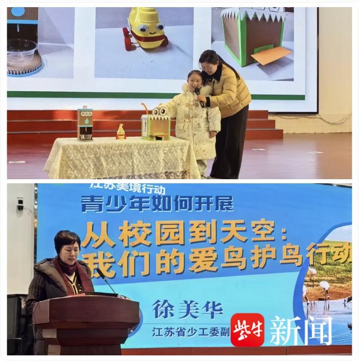 伴随着悠扬的学生合唱《踩到猫》《声声慢》,暖场表演拉开会场活动的序幕,3个涵盖古树保护、河流守护、废旧物品改造的优秀方案以故事化的形式精彩亮相,充分展现了STEM理念在环保实践中的创新应用。在经验分享环节,师生代表围绕学校绿色教育管理和学生环保实践分享经验心得,活动还特别邀请昆山市科技创新导师王建萍为我们带来美境行动优秀案例分享。江苏省少年工作委员会徐美华主任围绕“爱鸟护鸟”开展专题授课,为师生环保实践提供专业指导。